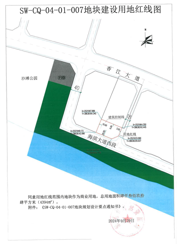 汕尾信德房地产开发有限公司通过公开招拍挂取得位于市区海滨大道西段北侧一宗面积4394㎡商业用地的土地使用权,现拟核发该用地的建设用地规划许可证。依照《广东省城乡规划条例》第二十九条的有关规定,对相关事项公示如下: