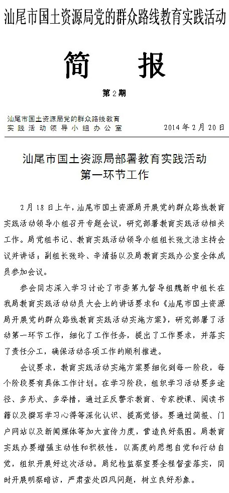 汕尾市国土资源局党的群众路线教育实践活动简报 第二期