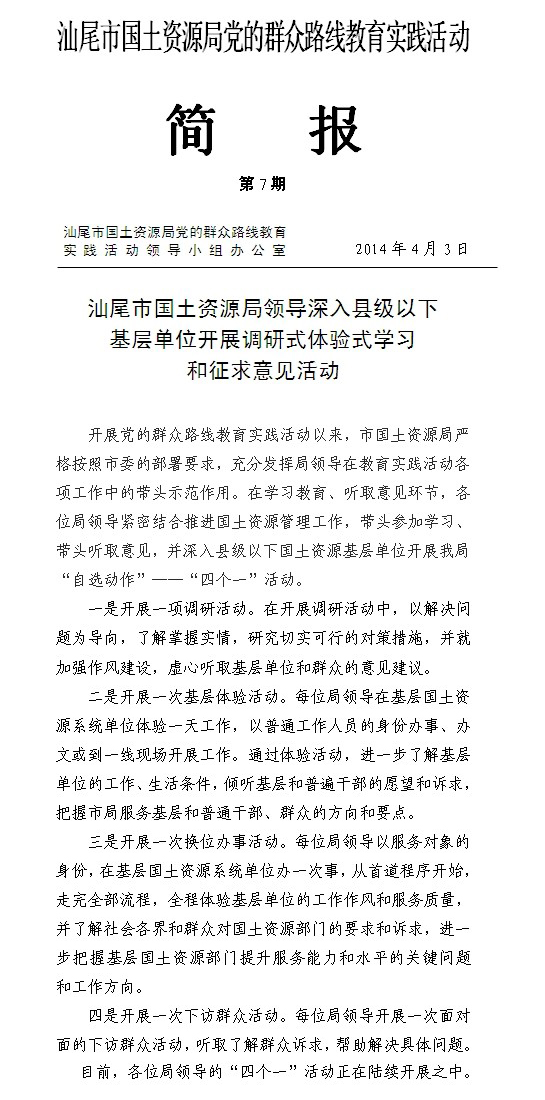 汕尾市国土资源局党的群众路线教育实践活动简报 第七期