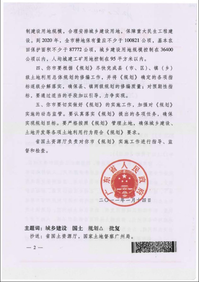 关于汕尾市土地利用总体规划(2006~2020年)的批复