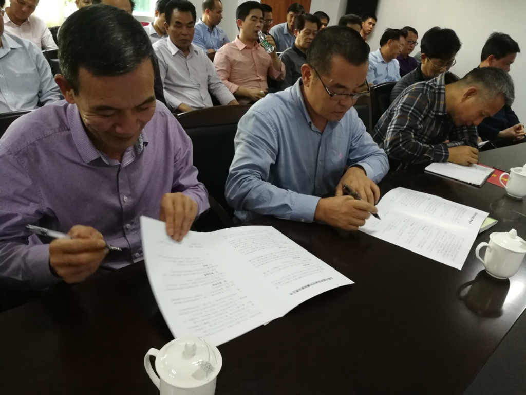 会议最后还与企业代表市南告水电有限公司、市金叶发展公司签订党风廉政建设责任书。