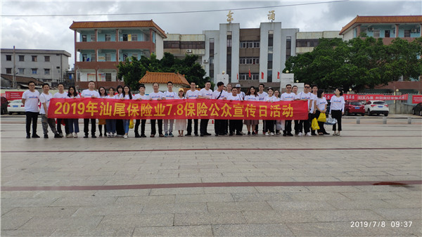 2019年7月8日,汕尾市保险行业协会联合辖内15家保险机构在城区东涌镇广场开展“7.8全国保险公众宣传日”集中活动。