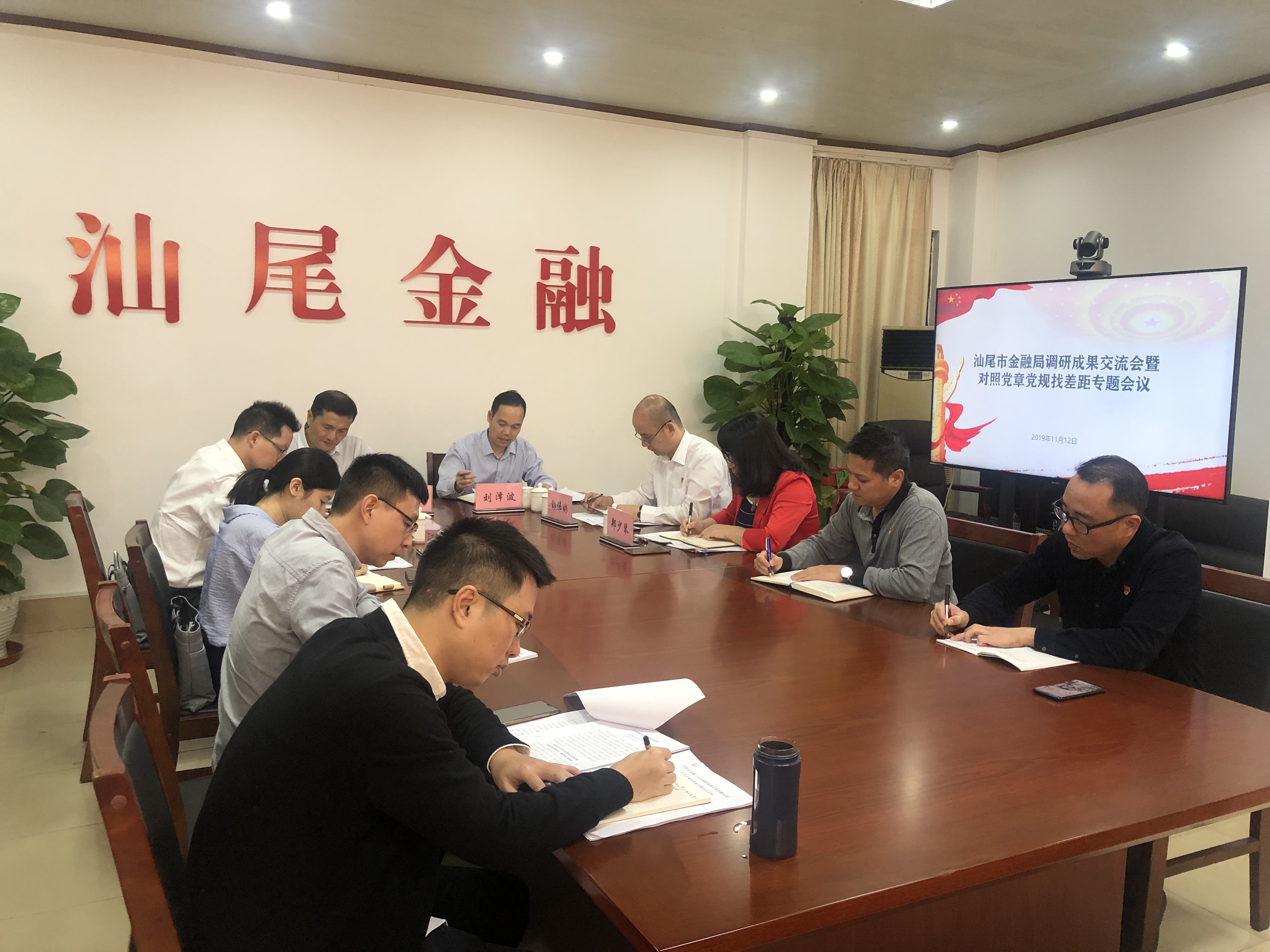 2019年11月12日,根据汕尾市委“不忘初心、牢记使命”主题教育要求和局主题教育安排,汕尾市金融工作局召开“不忘初心、牢记使命”主题教育调研成果交流会暨对照党章党规找差距专题会议,市委“不忘初心、牢记使命”主题教育第八指导组到会指导。