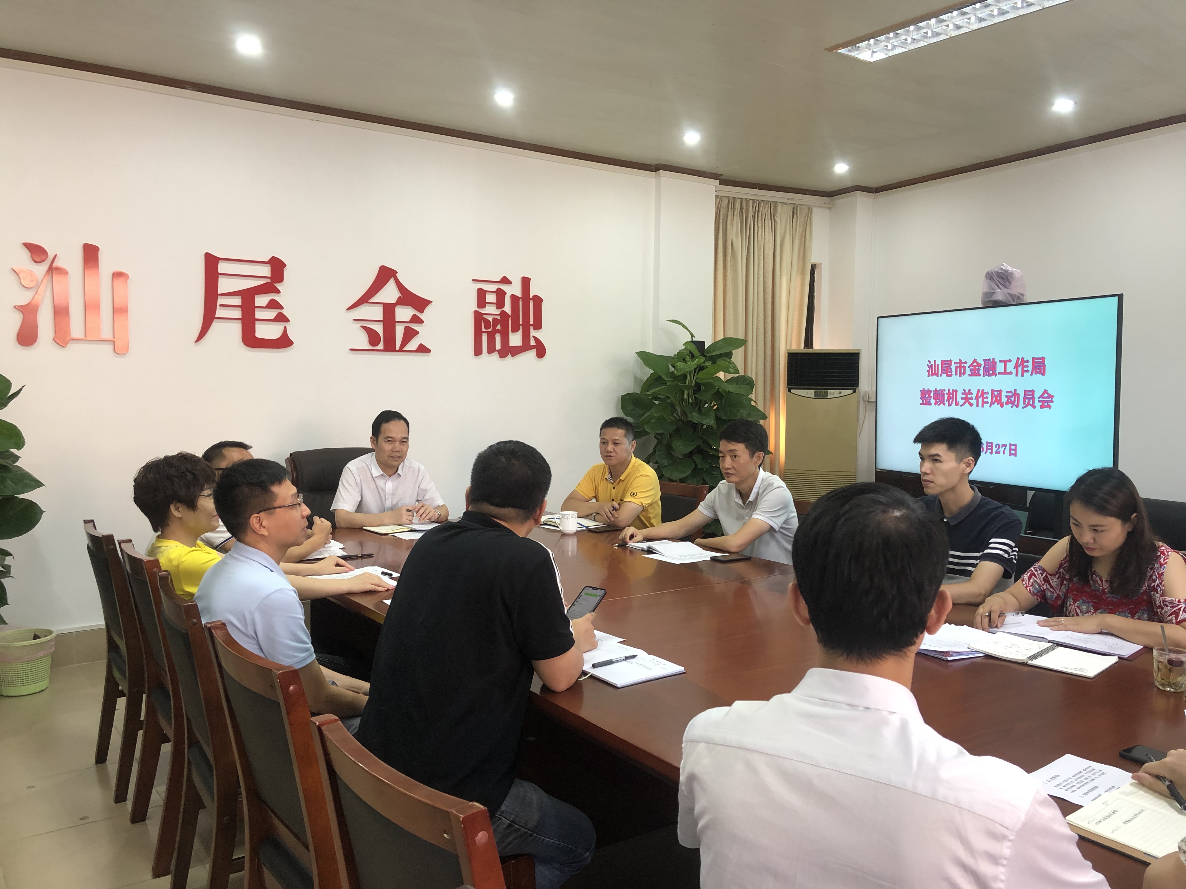 6月27日下午,汕尾市金融工作局召开机关作风整顿工作会议,以党的十九大、十九届三中全会精神、习近平总书记在“不忘初心、牢记使命”主题教育工作会议上的重要讲话精神为指导,以提高金融局队伍责任担当为核心,部署解决干部职工思想、作风、纪律等存在的突出问题,建设一支高素质的金融工作队伍。局党组副书记、副局长刘泽波同志主持会议。
