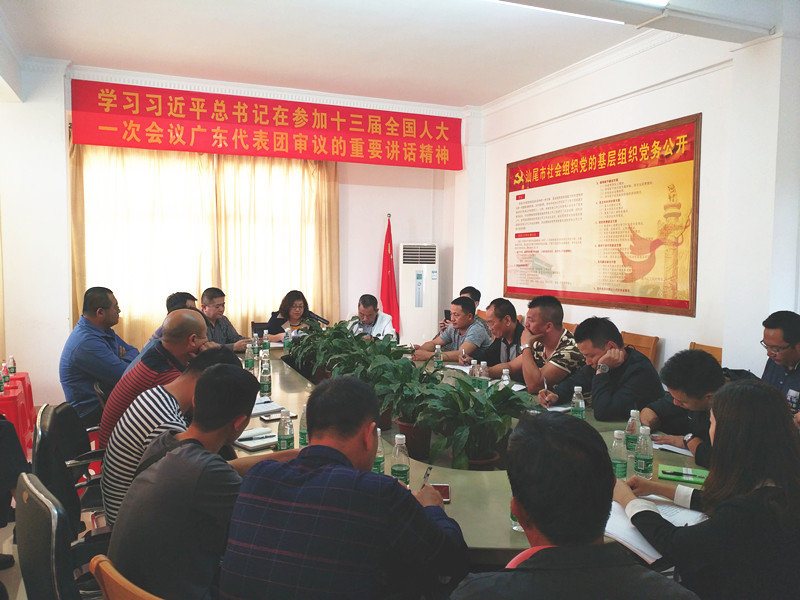 4月9日下午,市经信局郑泽梅副局长组织汕尾市安宏民爆物品销售有限公司全体员工,认真学习宣传贯彻习近平总书记在参加十三届全国人大一次会议广东代表团审议时的重要讲话精神。