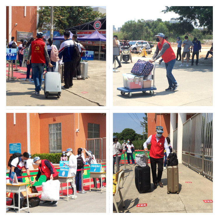 伴着晨曦,汕尾市教育局陈建平副局长亲临学校指导复学返校工作,黄德钦校长带领学校行政领导、老师化身“防疫员”“安检员”和志愿者,按照工作安排到岗就位,从严把入校“第一道关”开始,以饱满的热情迎接学生返校。按照预案,分批、错峰、错时返校的原则,高三学生按学校规定的时间点陆续到校,多路纵队、相互间隔1米的方式,在学校领导和老师的指挥下,依次通过行李消毒、测温通道进入校园,上交健康卡,通过温馨的大道回到宿舍,校园又恢复了往日的生机与活力!