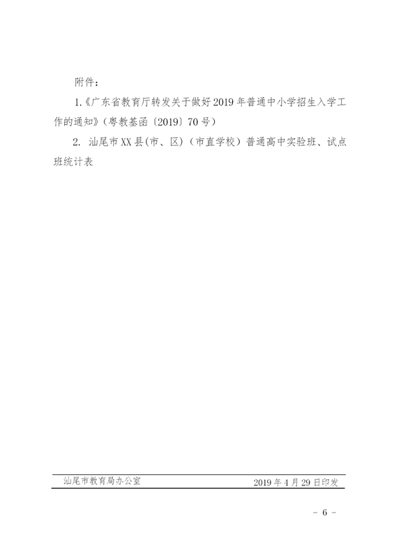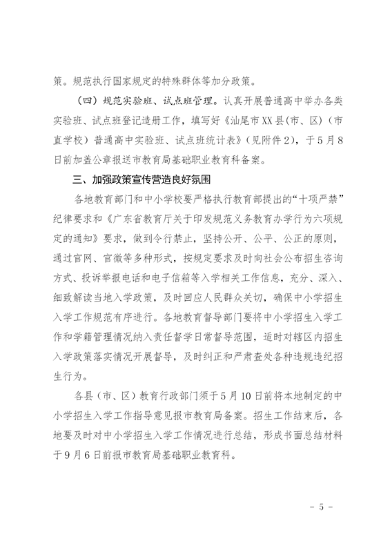 汕尾市教育局关于印发《汕尾市2019年普通中小学招生入学工作指导意见》的通知