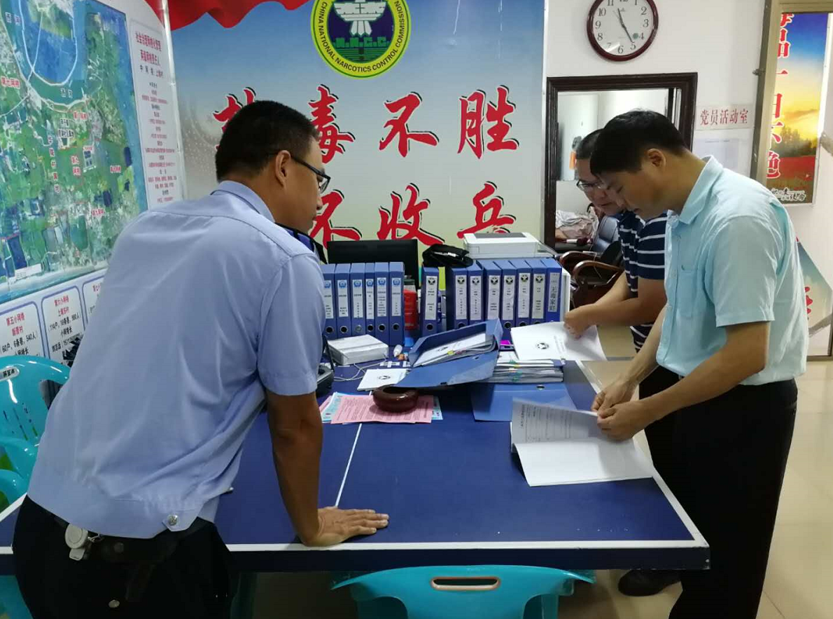 2020年7月26日,汕尾市科技局党组书记、局长蔡振荣带队到甲西镇上堆村调研督导禁毒工作。蔡局长在村委会与该村驻村工作组同志、驻村民警、村“两委”干部座谈交流,了解近期禁毒示范创建推进工作,检查禁毒工作台账。