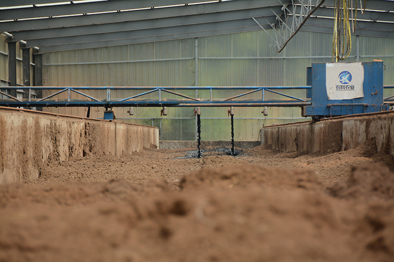 在福建省福清市永诚华多种猪公司猪场内,半自动化机械将收集的养殖粪污喷洒至垫料上。这是福建首创的“异位发酵床”技术,发酵后的粪污可以作为有机肥源,并可以让养殖场实现污染“零排放”(2019年8月12日摄)。新华社记者 林超 摄