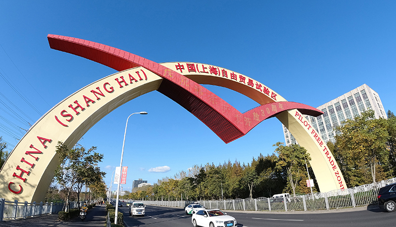 这是2020年11月11日拍摄的中国(上海)自由贸易试验区标志门。新华社记者 方喆 摄