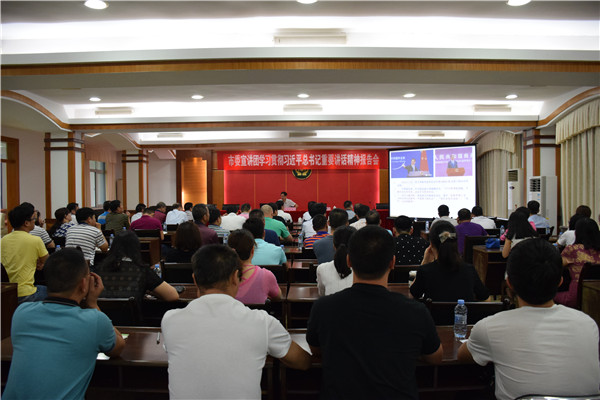 5月8日上午,按照市委的统一部署,市委宣讲团成员、市纪检监察学会常务副会长,市社科联副主席黄亿丰同志到我局宣讲学习贯彻习近平总书记在参加广东代表团审议时的重要讲话精神和全国两会精神报告会专题宣讲辅导。市民政局党组书记、局长陈波主持宣讲报告会并作讲话。市民政局领导班子,局机关全体干部职工和直属单位党员干部参加报告会。