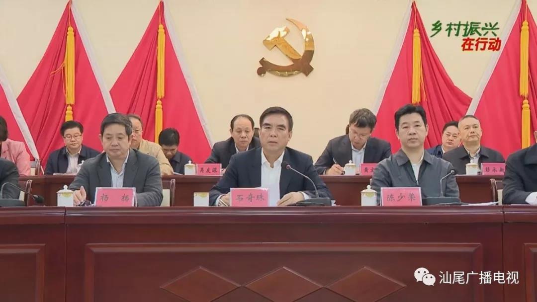 石奇珠强调,实施乡村振兴战略是全市农民群众对美好生活的热切期盼,是关系实现全面建成小康社会第一个百年奋斗目标的全局性、历史性任务,是中央和省委交给我们的历史重任。让我们高举习近平新时代中国特色社会主义思想伟大旗帜,深入学习贯彻落实习近平总书记关于“三农”工作重要论述精神,按照党中央、省委决策部署和李希书记的指示要求,闻鸡起舞、日夜兼程、风雨无阻,奋力推进乡村振兴战略,加快把汕尾建设成为沿海经济带的靓丽明珠,为广东实现“四个走在全国前列”、当好“两个重要窗口”作出新的更大贡献。