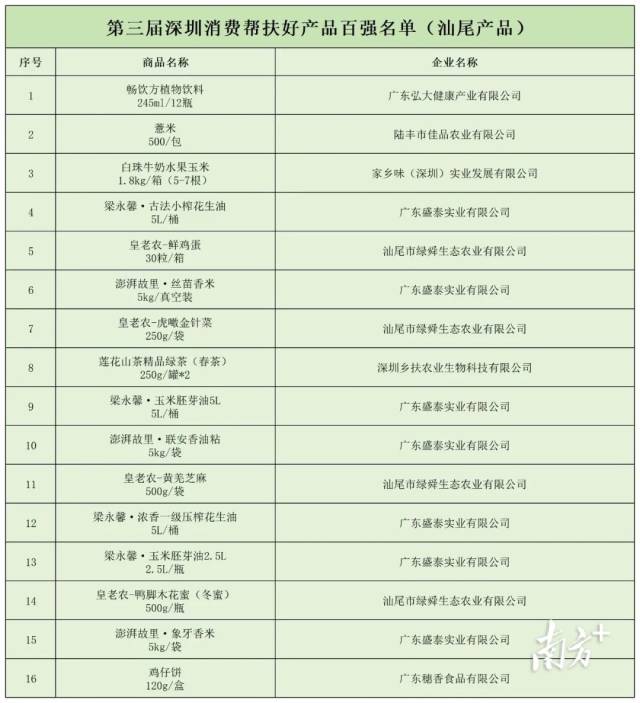 日前,第三届“海推海选联展联销”深圳消费帮扶好产品评选推介活动入围名单公布,汕尾市16个产品入围深圳消费帮扶“百强好产品”名单。