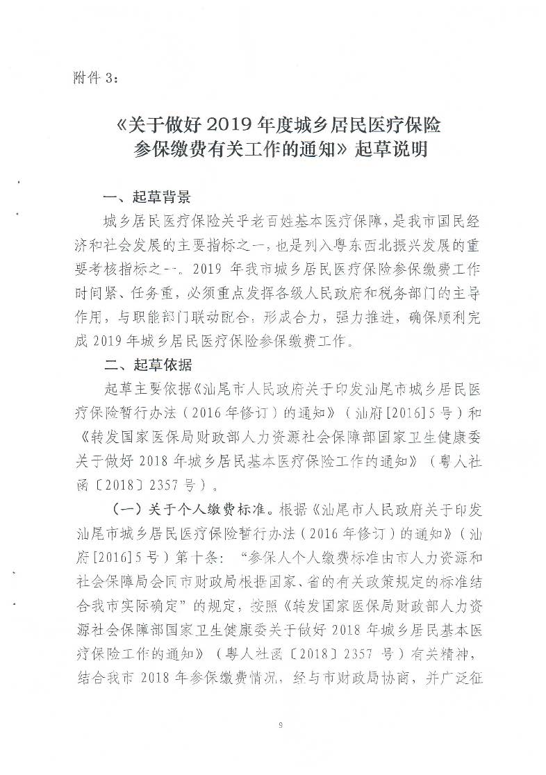《关于做好2019年度城乡居民医疗保险参保缴费有关工作的通知》起草说明