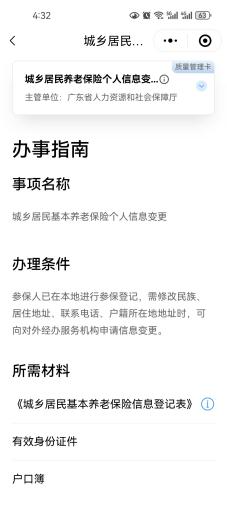 微信进入“粤省事”小程序搜索“城乡居民基本养老保险个人信息变更”进行办理。