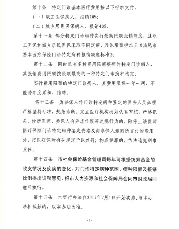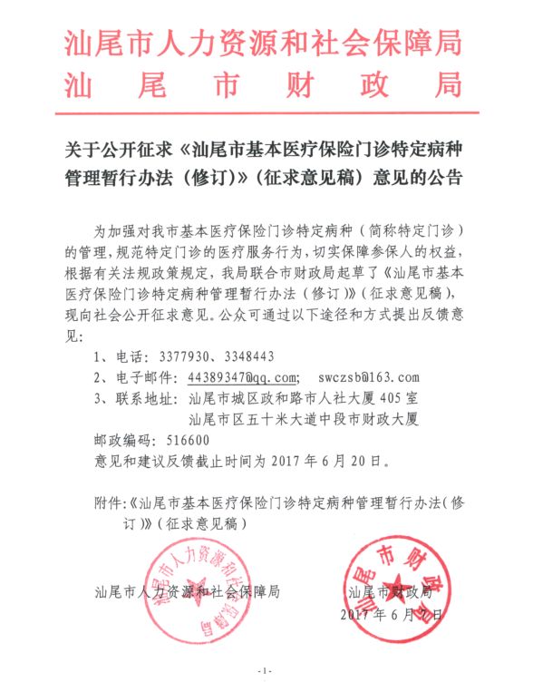 关于公开征求《汕尾市基本医疗保险门诊特定病种管理暂行办法(修订)》(征求意见稿)意见的公告