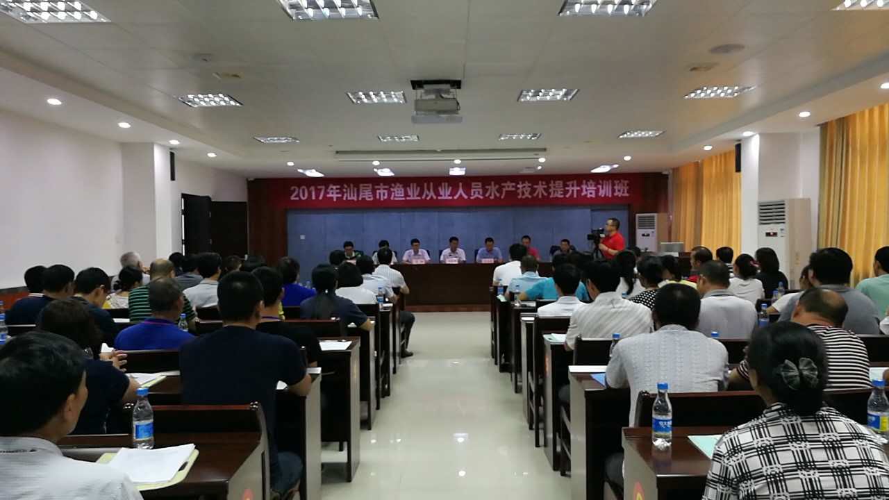 日,汕尾市人社局、市海洋与渔业局、市海洋与渔业协会联合举办渔业从业人员水产技术提升培训班。市海洋捕捞、水产养殖等涉鱼行业从业人员参加培训。
