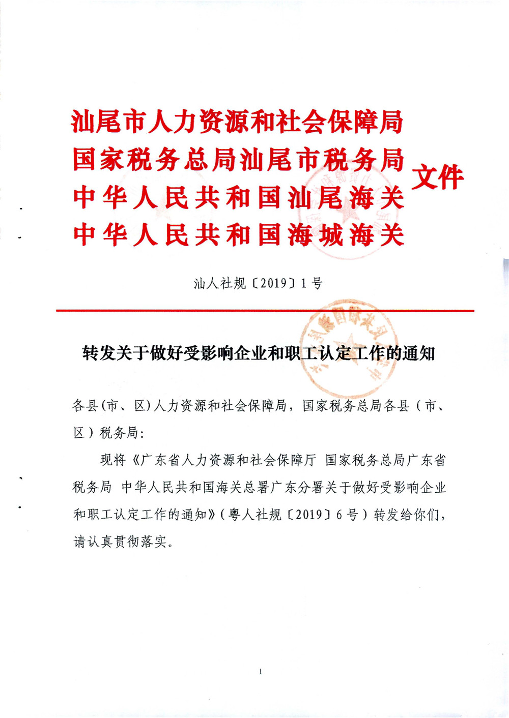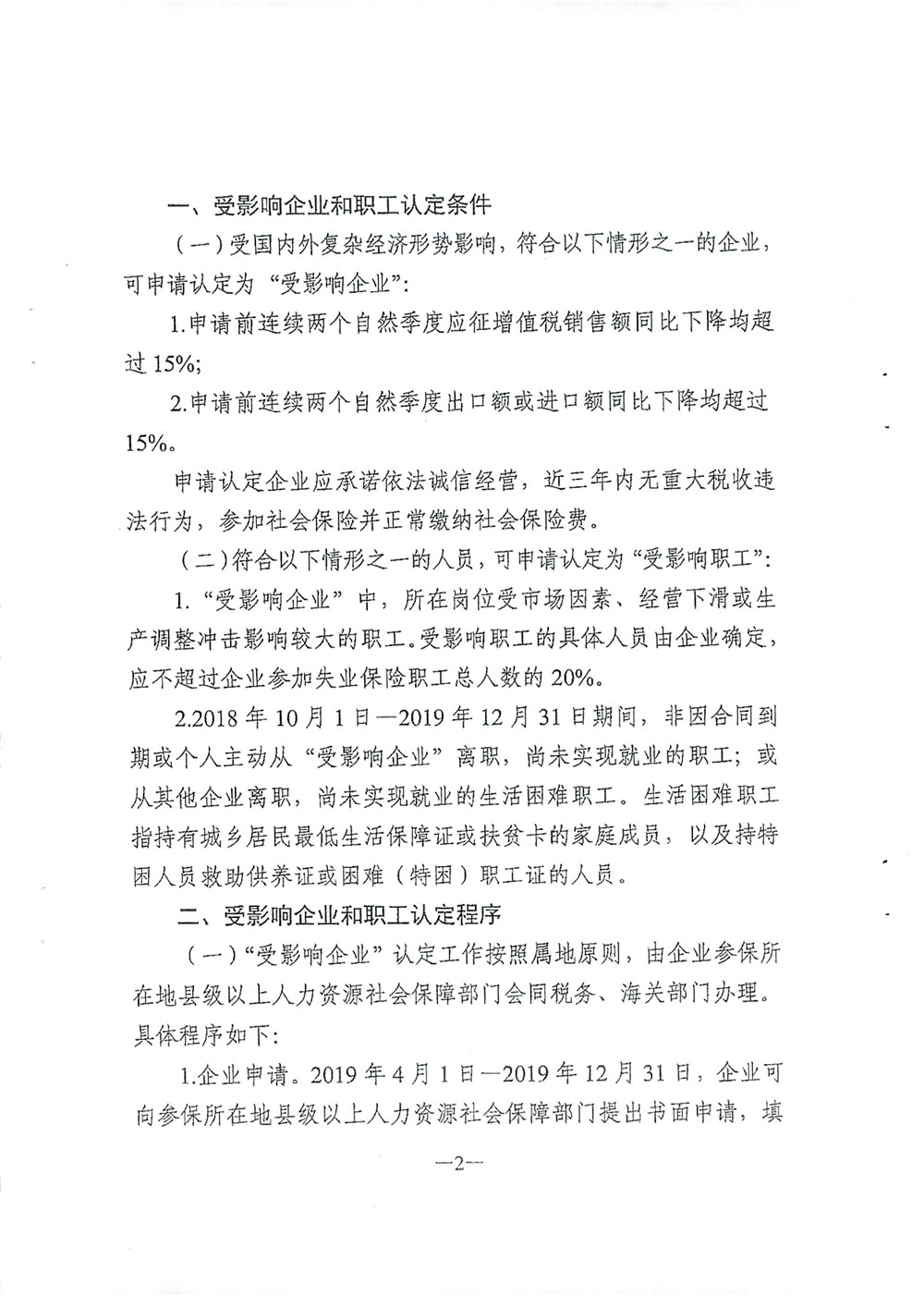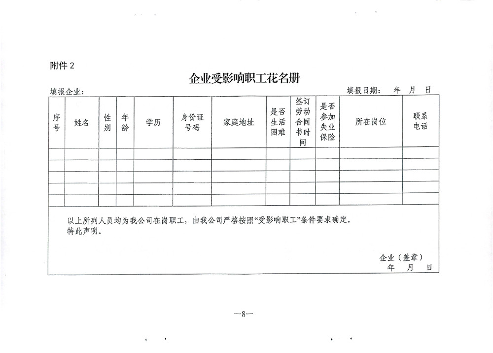转发关于做好受影响企业和职工认定工作的通知