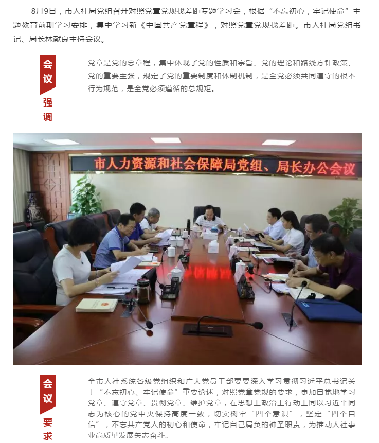 市人社局党组召开对照党章党规找差距专题学习会