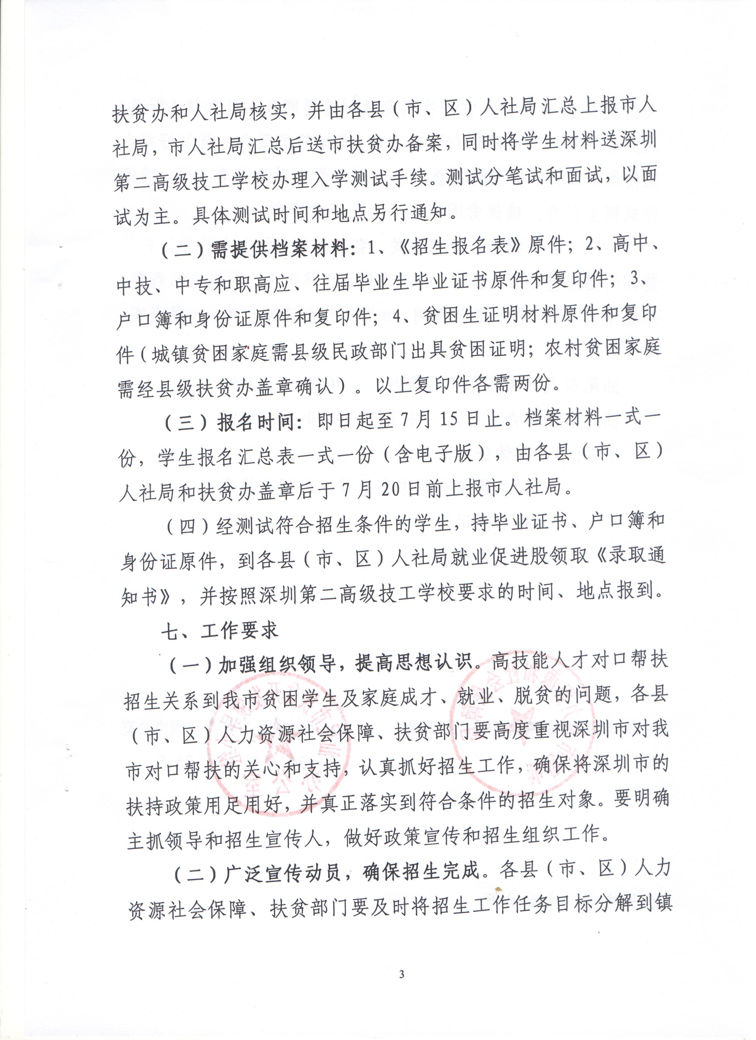 关于开展与深圳对口扶贫招生工作的通知