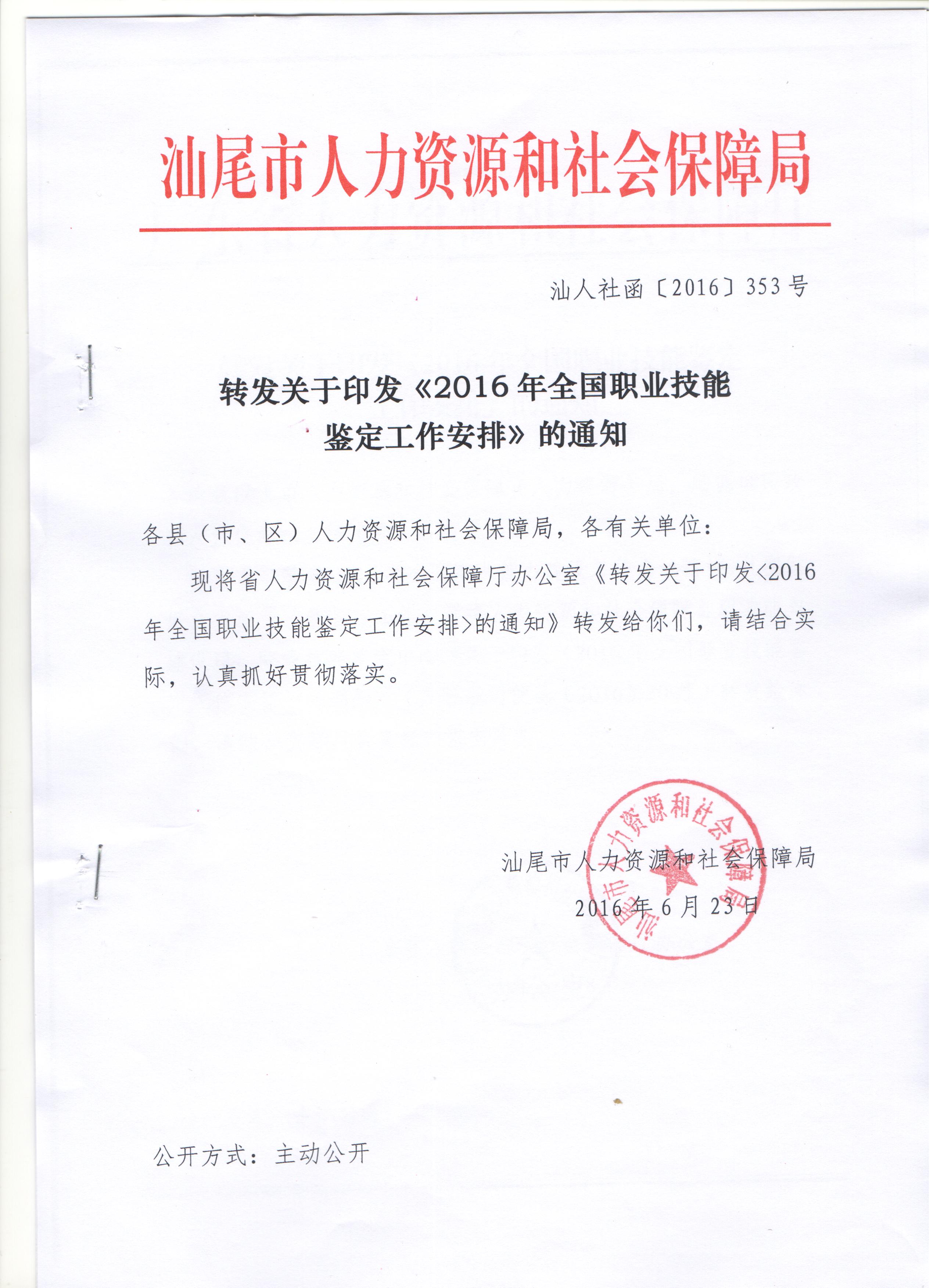 转发关于印发《2016年全国职业技能鉴定工作安排》的通知