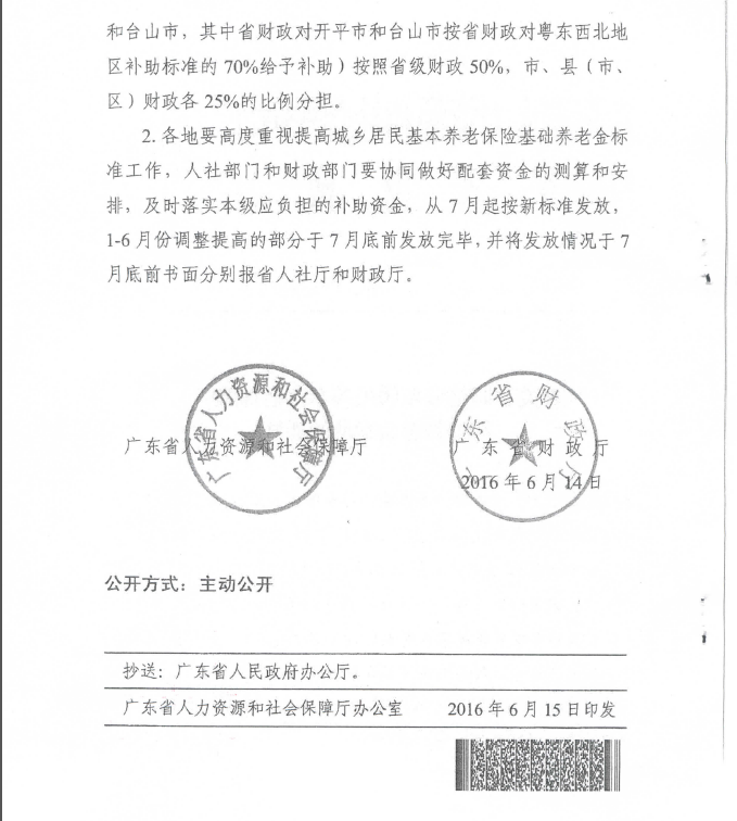 转发关于调整城乡居民基本养老保险基础养老金标准的通知
