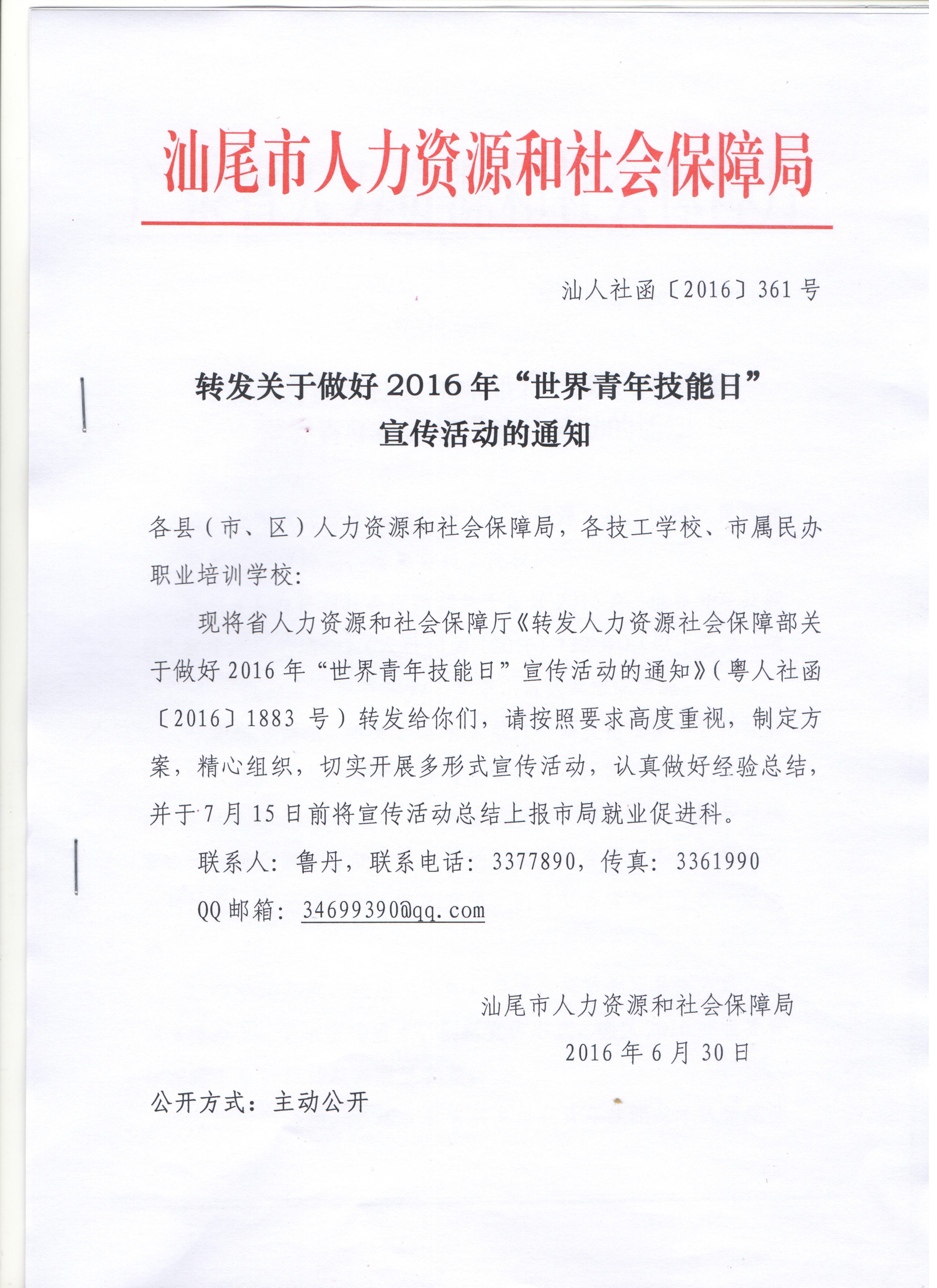 492、转发人力资源社会保障部关于做好2016年“世界青年技能日”宣传活动的通知.pdf