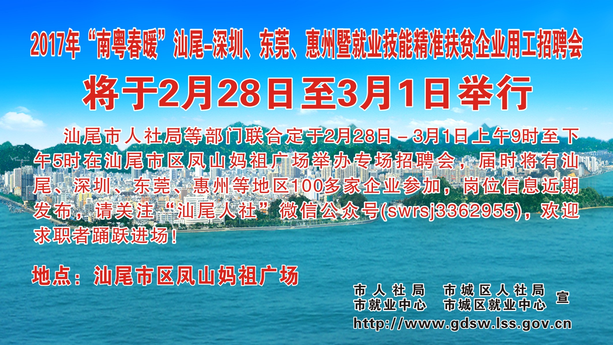 2017南粤春暖汕尾-深圳、东莞、惠州暨就业技能精准扶贫企业用工招聘会