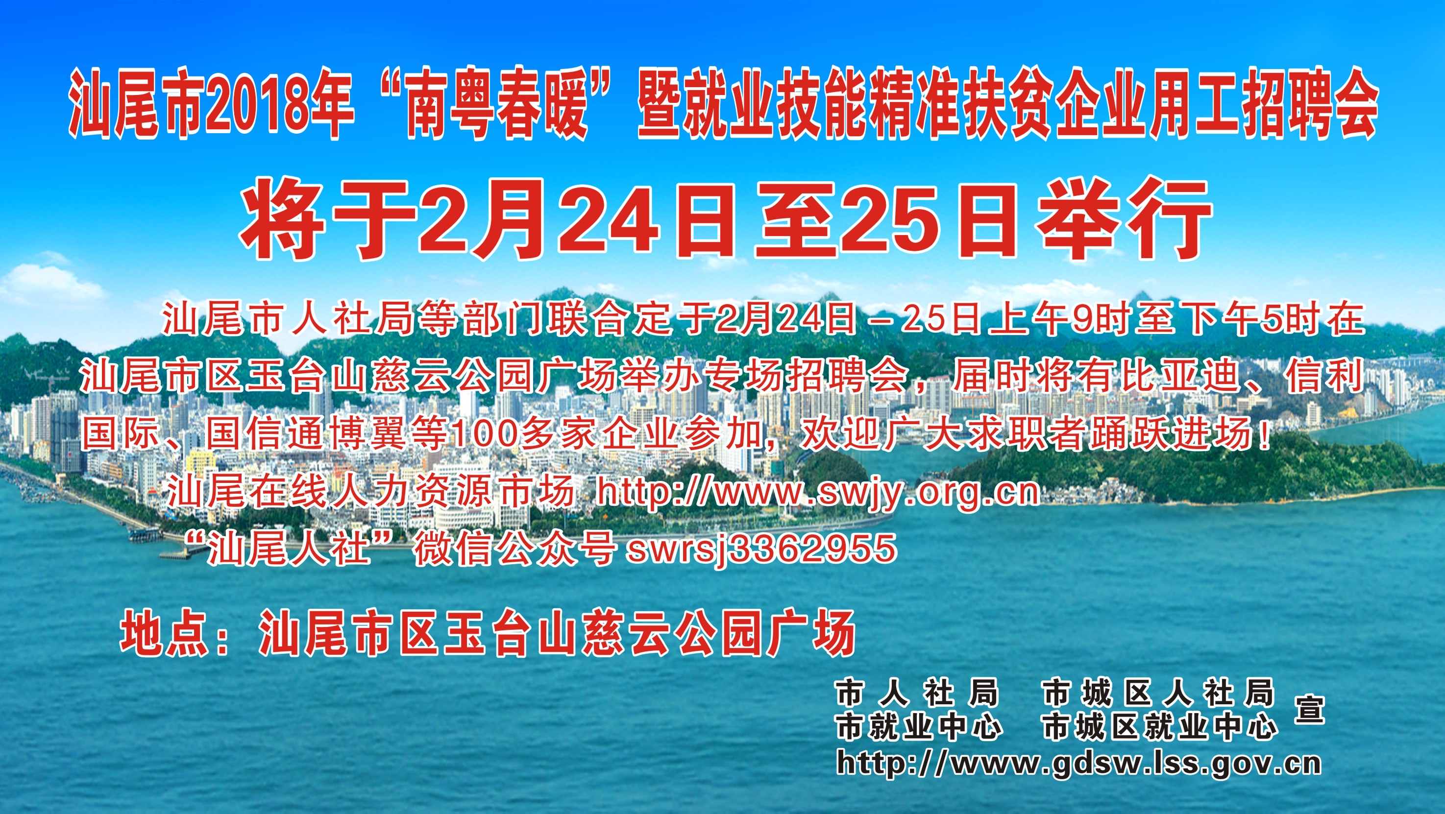 汕尾市2018年“南粤春暖”暨就业技能精准扶贫用工招聘会