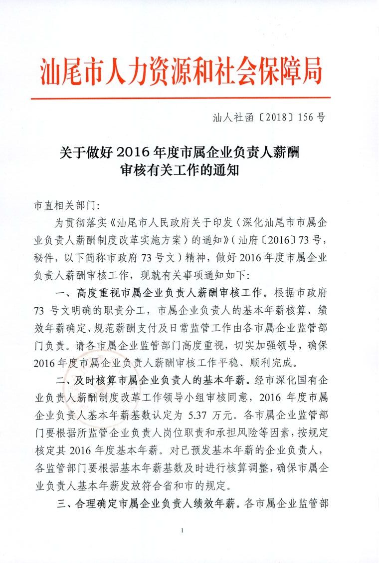 关于做好2016年度市属企业负责人薪酬审核有关工作的通知