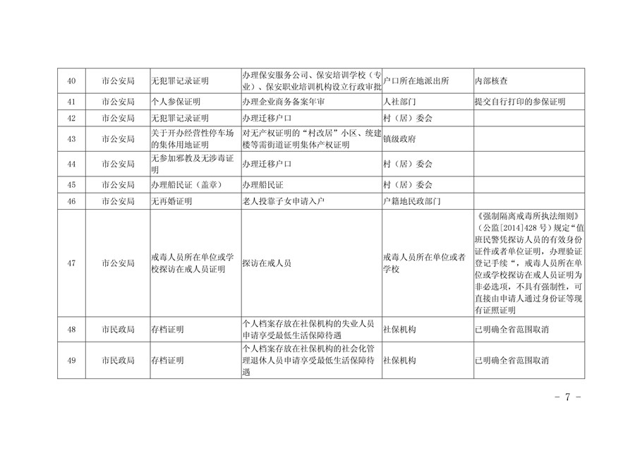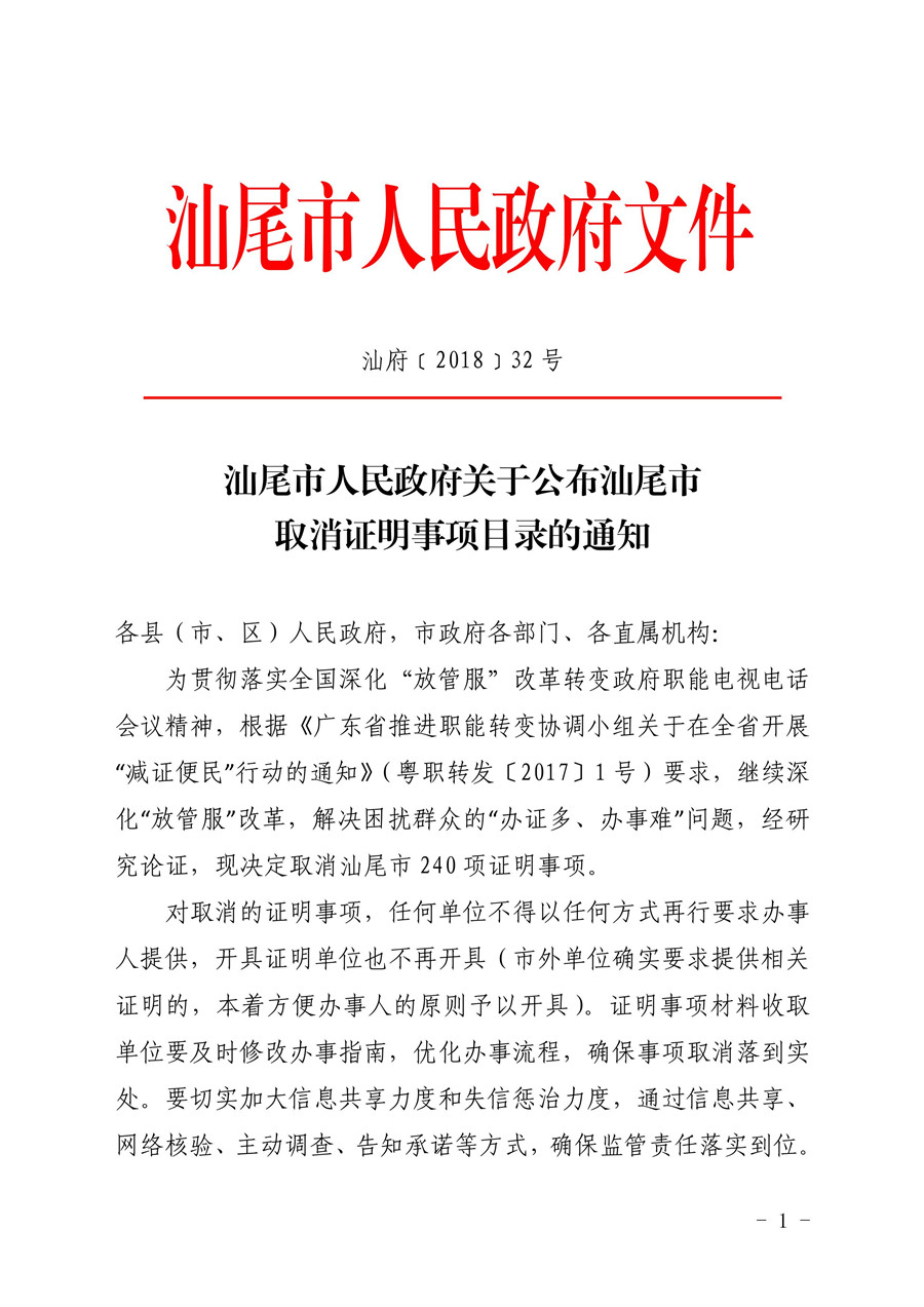 汕尾市人民政府关于公布汕尾市取消证明事项目录的通知