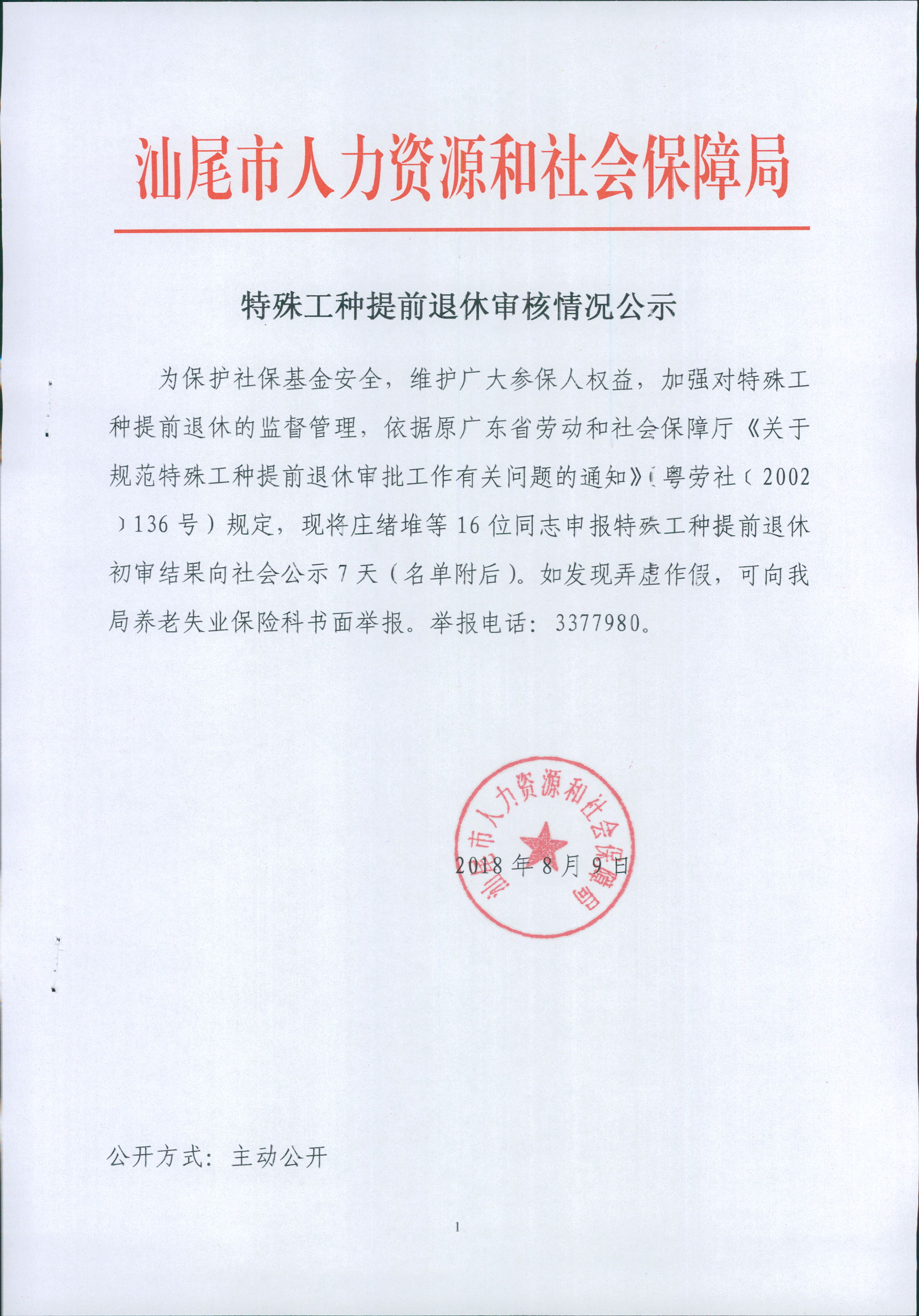 特殊工种提前退休审核情况公示