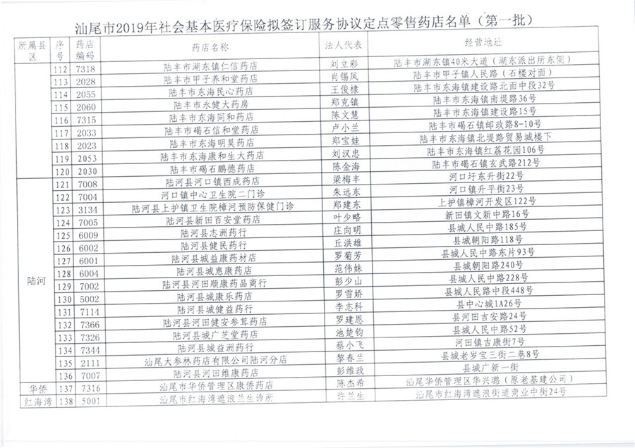 关于汕尾市2019年基本医疗保险拟签订定点医药机构名单的公示(第一批)
