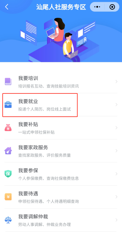 即可进行岗位查找、在线求职、远程面试等多项求职就业服务。
