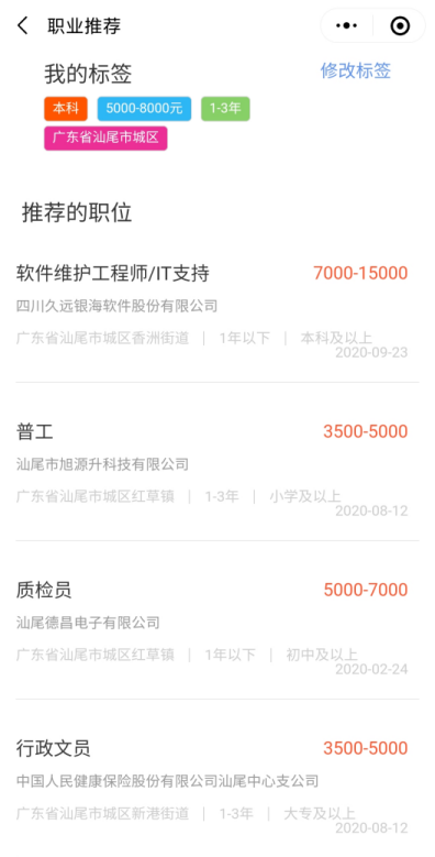 01“职位推荐”可根据求职者的个人求职标签,推荐个性化的岗位。
