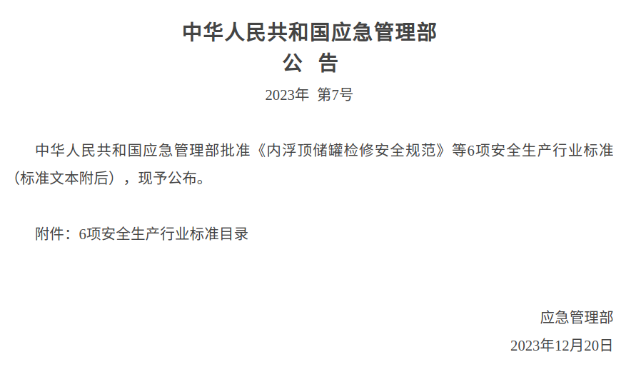 6项安全生产行业标准公布!一起看看都与哪些企业息息相关?