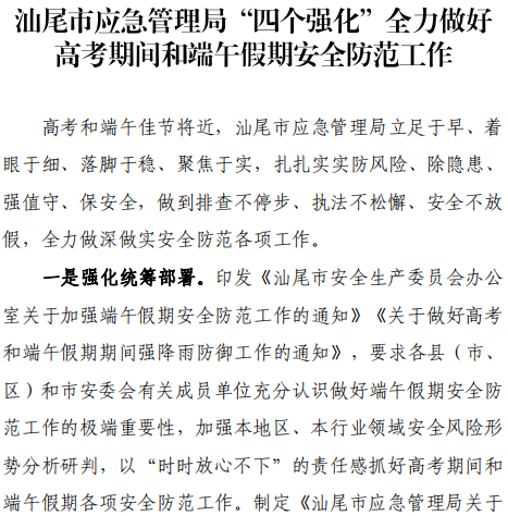 汕尾市应急管理工作简报(2024年第16期)