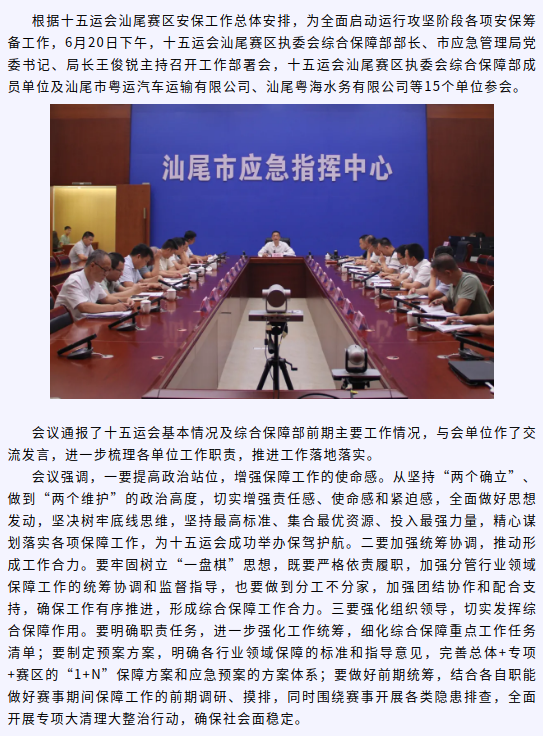 十五运会汕尾赛区执委会综合保障部召开工作部署会 推进各项保障工作落地落实