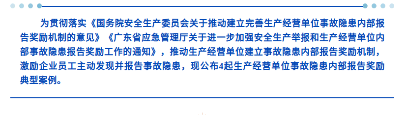 汕尾公布4起生产经营单位事故隐患内部报告奖励典型案例