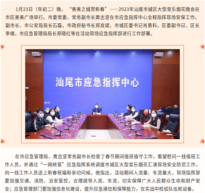 我市全力保障“善美之城贺新春”大型音乐烟花晚会安全顺利开展