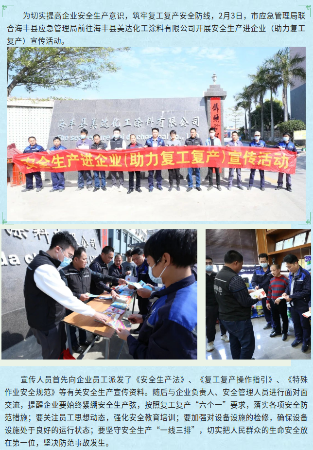 市应急管理局开展安全生产进企业(助力复工复产)普法宣传活动