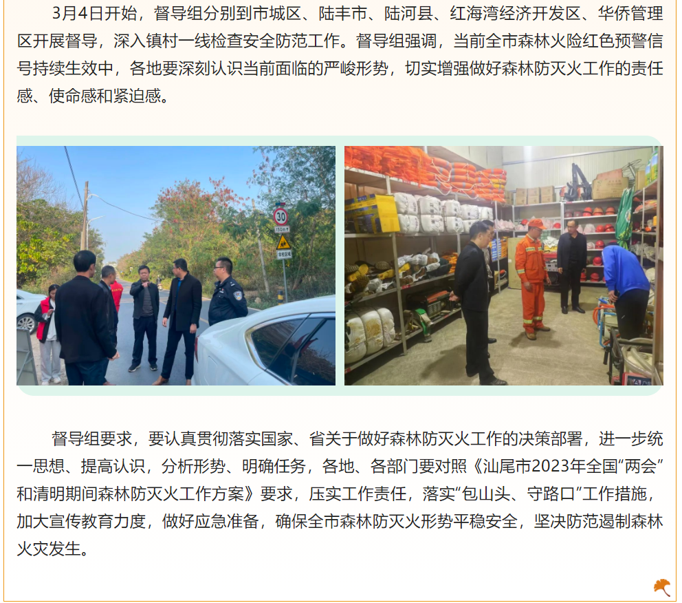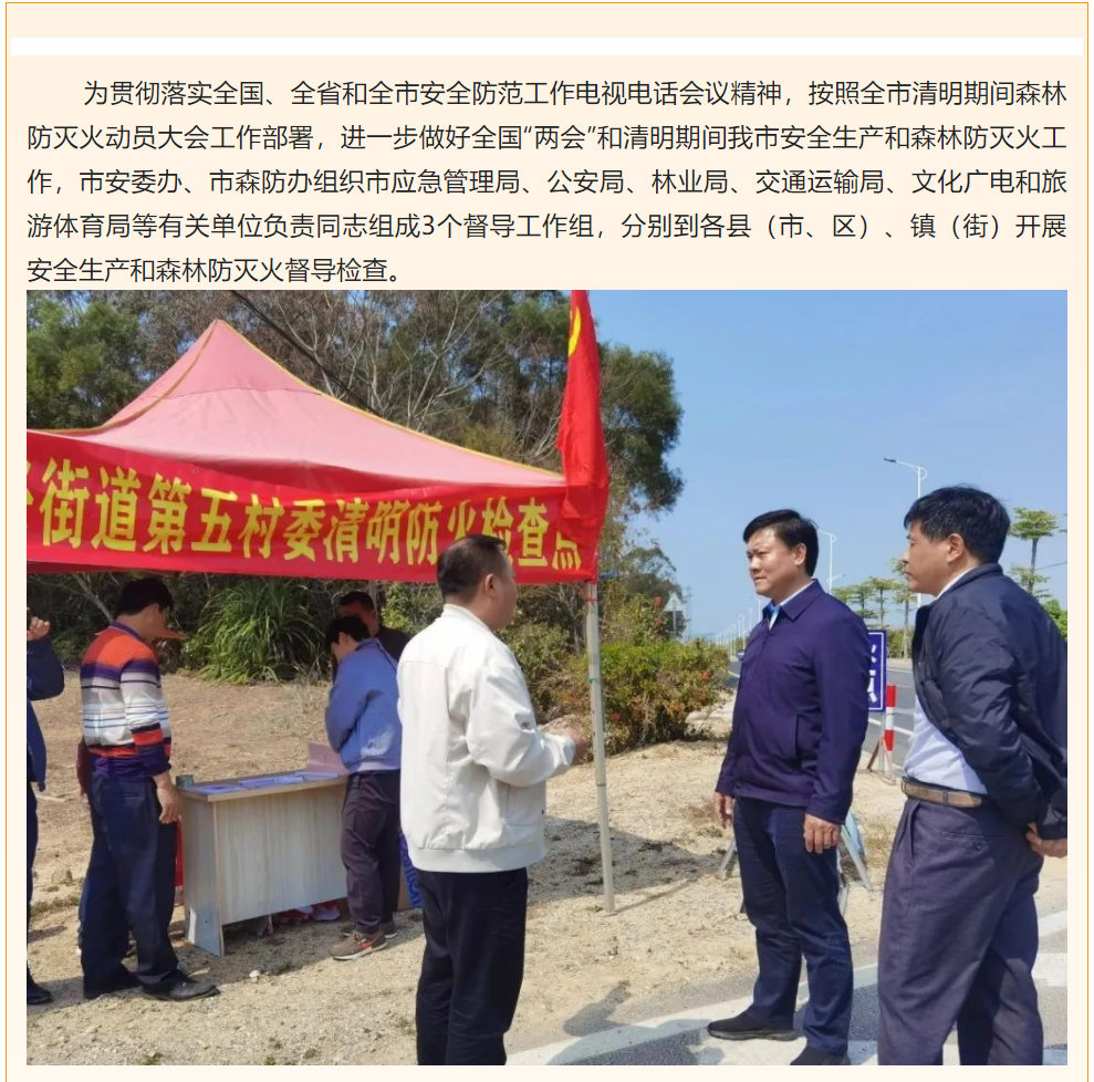 市安委办、市森防办组织开展安全生产和森林防灭火督导检查工作