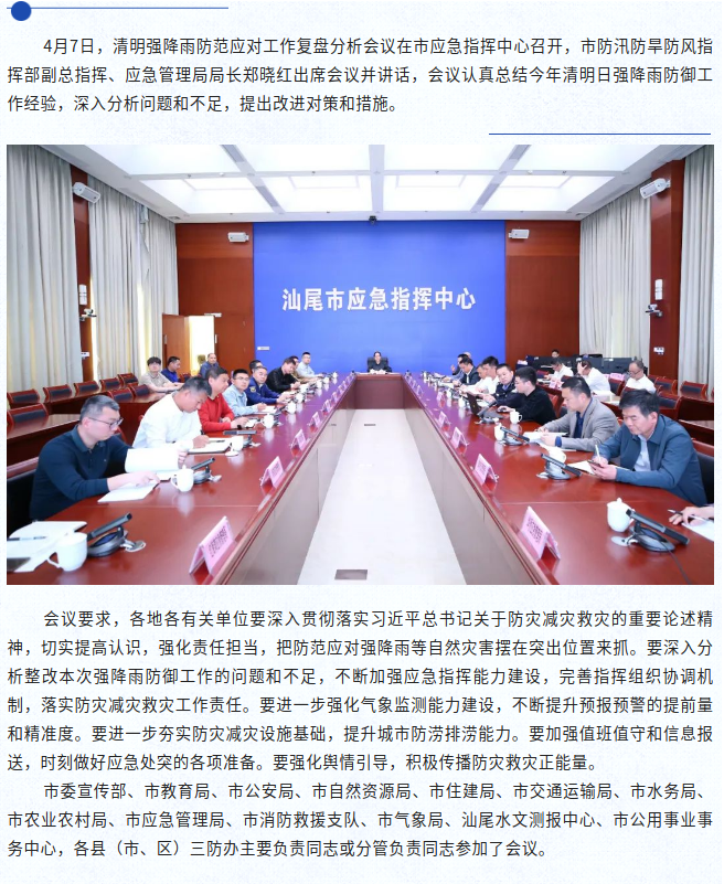 市三防办组织召开清明强降雨防范应对工作复盘分析会议
