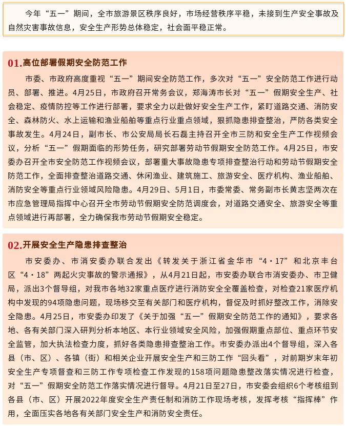 “五一”假期,全市平安过节
