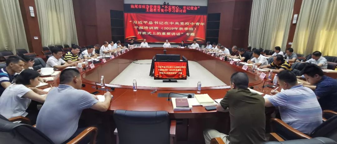 9月17日至9月22日,为期六天的汕尾市应急管理局“不忘初心、牢记使命”主题教育集中学习研讨班圆满结束。本次研讨班围绕习近平总书记关于“不忘初心、牢记使命 ”的重要论述,革命传统教育,党章、党史和新中国史,《习近平新时代中国特色社会主义思想学习纲要》,习近平总书记在中央党校中青年干部培训班(2019年秋季班)开班式上的重要讲话,党章等6个专题开展学习研讨。6天来,经过全体同志的共同努力,这次集中学习研讨培训班完成了全部专题,达到了预期的效果。市应急管理局副处以上领导干部、科室负责人、直属单位负责人、全体党员参加此次主题教育集中学习研讨班。