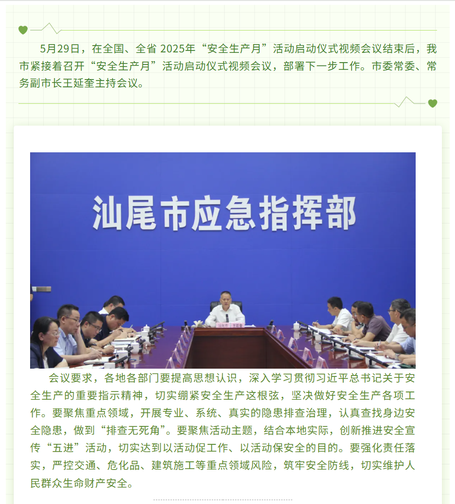 我市部署“安全生产月”活动 坚决做好安全生产各项工作