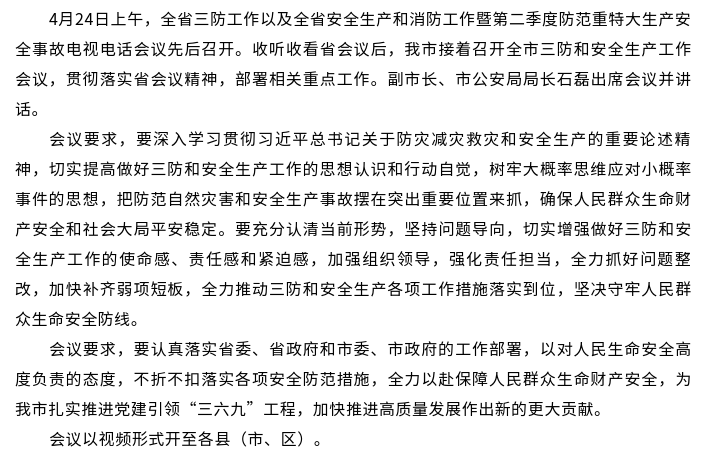 我市召开会议贯彻落实全省三防工作等电视电话会议精神 全力以赴保障人民群众生命财产安全