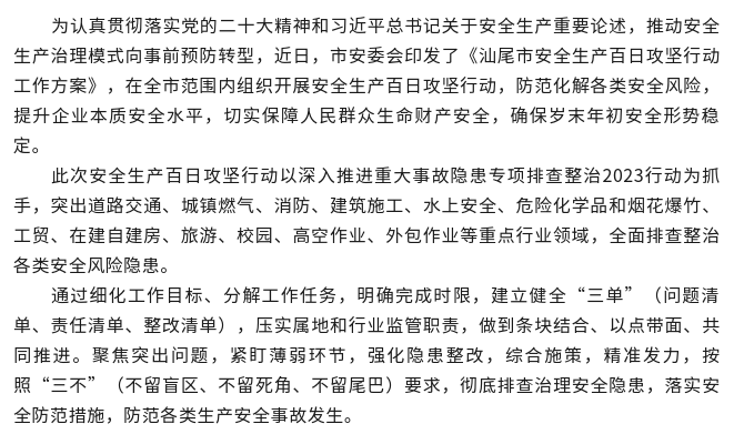 市安委会组织开展安全生产百日攻坚行动 确保岁末年初安全形势稳定