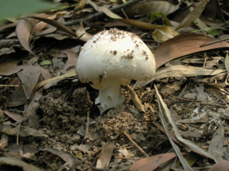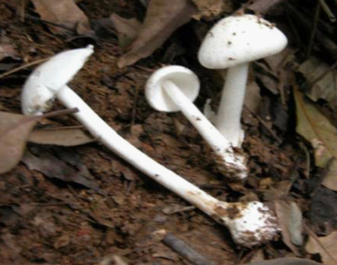 在广东地区,导致中毒人数最多的两种蘑菇分别是白毒伞(致命鹅膏)和铅绿褶菇,其中白毒伞又是毒性最强的。白毒伞的白色菌体幼时卵形,后菌盖展开成伞状。常在黧蒴树树阴下群生或散生,分布在广州、清远、肇庆等地,大量生长于春季温暖多雨的3~4月,5~7月也少量出现。