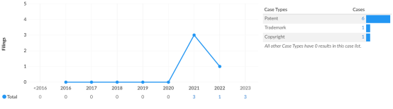 图2 :Aquapaw公司诉讼趋势 数据来源:LexMachina